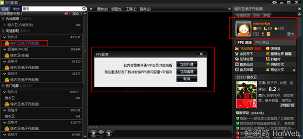 Step 2: 註冊完之後,開啓PPStream,再登入會員,然後點擊VIP的劇集或電影,就會出現需要開通的畫面。